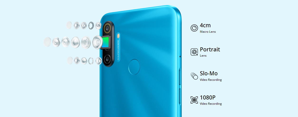 Realme memakai gabungan sensor 12MP, 2MP Dept sensor, dan tambahan lensa Macro yang menggunakan sensor 2MP.