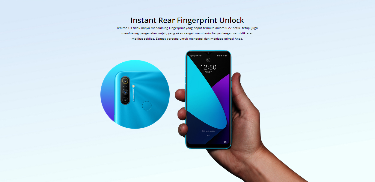 Selain mengusung rear-mounted fingerprint scanner, Realme C3 juga dilengkapi fitur Face Unlock.