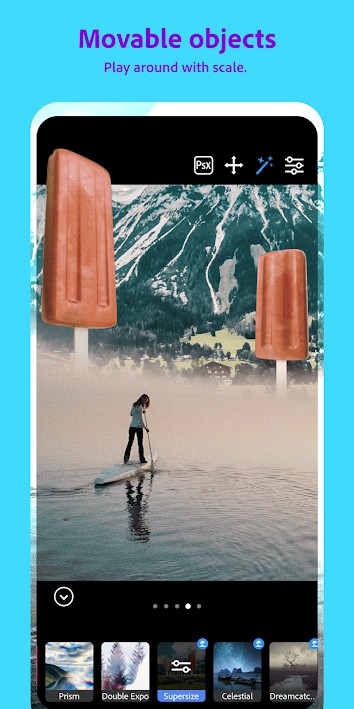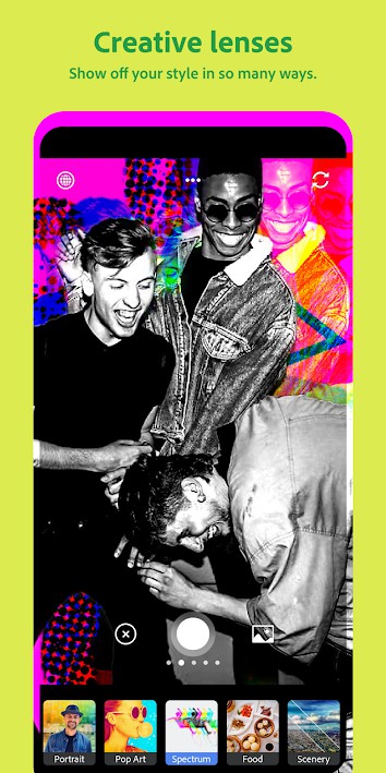 Photoshop Camera menyediakan hingga 80 custom photo filter dan fitur-fitur lain seperti portrait re-lighting dan distortion removal.