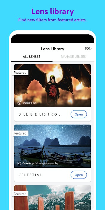 Dan untuk menarik perhatian anak-anak muda, Adobe bekerja sama dengan bintang pop terkenal Billie Elish untuk menciptakan limited-edition lenses (filters) yang terinspirasi dari musik dan videonya.