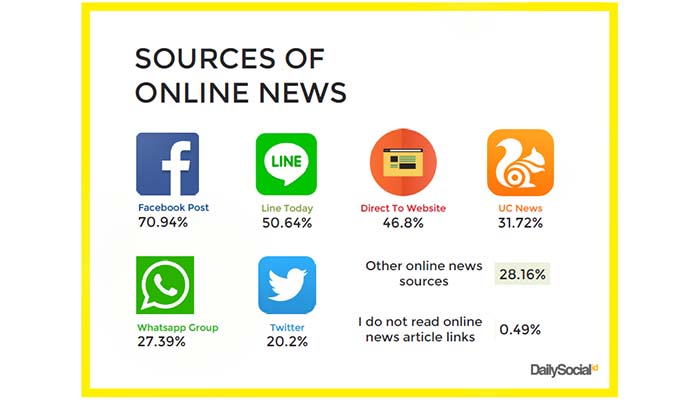 Hasilnya, mayoritas masyarakat Indonesia mendapatkan akses informasinya melalui internet, baik itu dari aplikasi di smartphone, ataupun dengan mengakses situs berita dan media sosial.