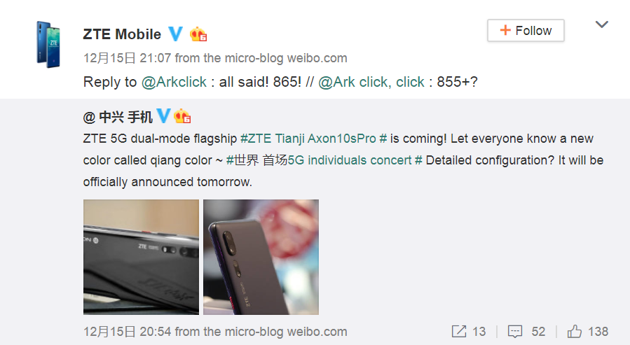 Untuk yang belum tahu, ZTE mempersenjatai smartphone tersebut dengan SoC flagship dari Qualcomm yaitu Snapdragon 855 yang digabung dengan X50 Modem untuk mendukung jaringan 5G.
