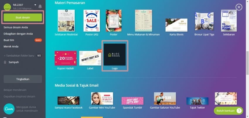 Langkah Kedua : Pilih “Buat Desain“, lalu pilih “Logo”