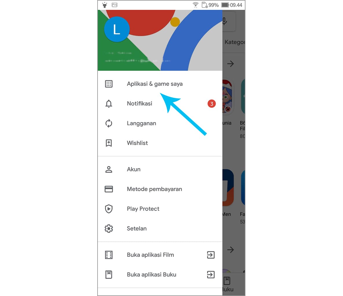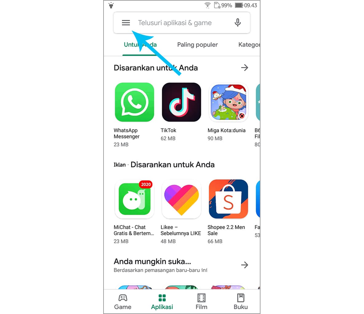 1. Silakan buka Play Store yang terpasang di smartphone Anda.