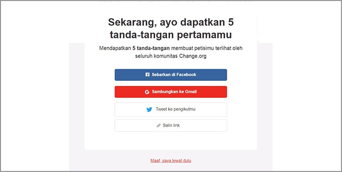 10. Setelah petisi diterbitkan, jangan lupa bagikan tautannya ke media sosial.