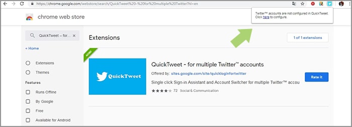 2. Klik tautan Quick Tweet, kemudian add to Chrome.