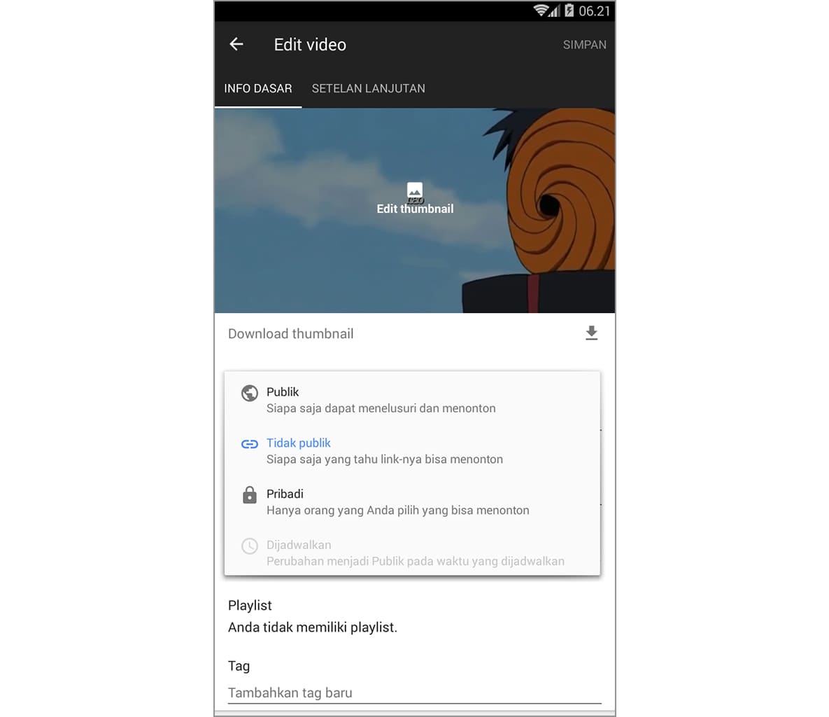 Itulah pembahasan yang bisa disampaikan tentang bagaimana caranya mengubah setelan privasi video YouTube di ponsel Android. Adapun untuk cara mengubah setelan privasi video YouTube di PC atau laptop, tentu Anda sudah bisa melakukannya sendiri, karena untuk mengubah setelan privasi video di PC atau laptop itu jauh lebih mudah seperti yang sudah disebutkan di awal pembahasan.