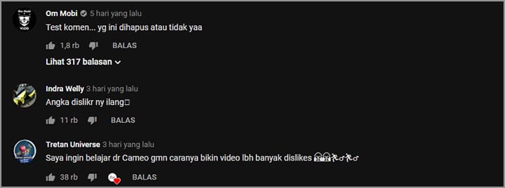 Selain menyembunyikan jumlah dislike, Anda juga bisa menonaktifkan kolom komentar untuk menghindari pertanyaan-pertanyaan dari para netizen, seperti “Kok jumlah dislike-nya disembunyiin?” atau komentar yang seperti di bawah ini.