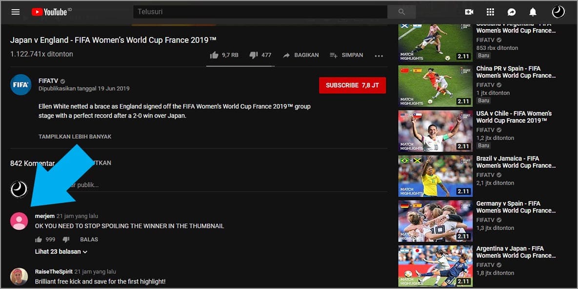 2. Cari pengguna melalui kolom pencarian YouTube atau melalui kolom komentar. Pada tutorial kali ini, yang dipilih adalah melalui kolom komentar.