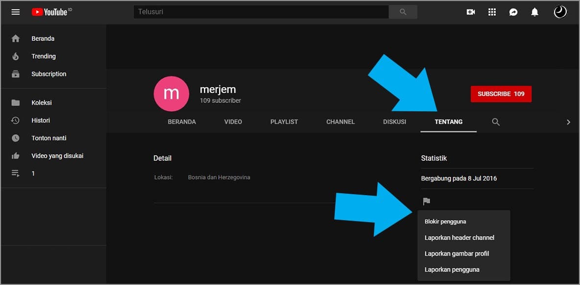 Fitur blokir pengguna tidak hanya dimiliki Facebook, Twitter, maupun Instagram karena YouTube pun juga memiliki fitur blokir pengguna. Fitur yang satu ini cocok untuk memberantas mereka-mereka yang suka berkomentar aneh-aneh di YouTube.