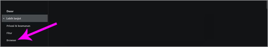 3. Klik ikon drop down pada lebih lanjut, kemudian pilih browser.