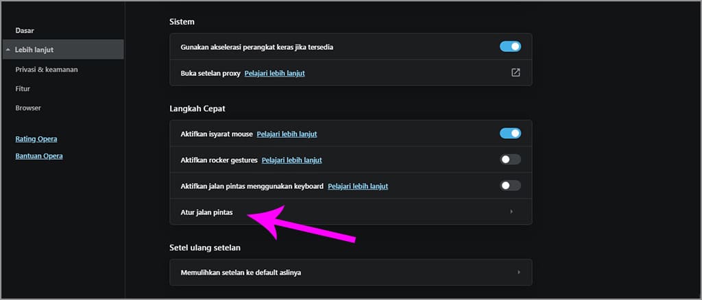 Cara Mengetahui Shortcut Keyboard Peramban Opera