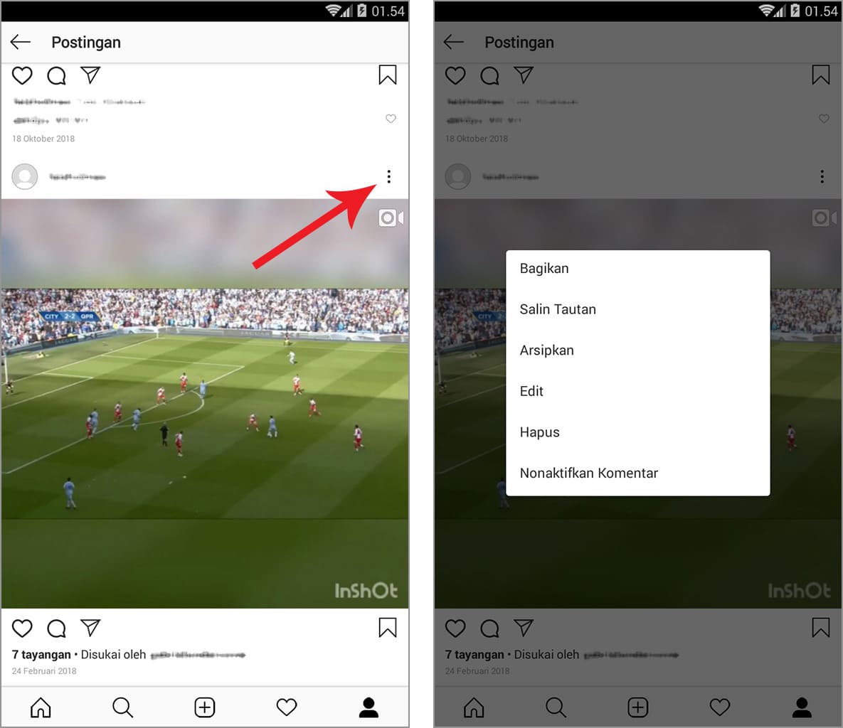 3. Ketuk tiga titik vertikal pada postingan, kemudian pilih arsipkan.