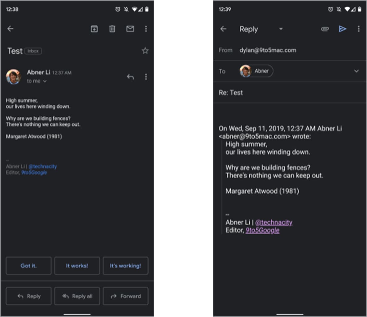 Selang beberapa hari setelah peluncuran Android 11, kabar tentang kejelasan dark mode di aplikasi Gmail akhirnya terjawab. Adalah 9to5Google yang menjelaskan itu semua. 9to5Google sendiri adalah situs yang membahas berita tentang Alphabet, Google, Android, Pixel, dan Chrome di mana mereka mengatakan jika dark mode sudah diluncurkan oleh pihak Google.