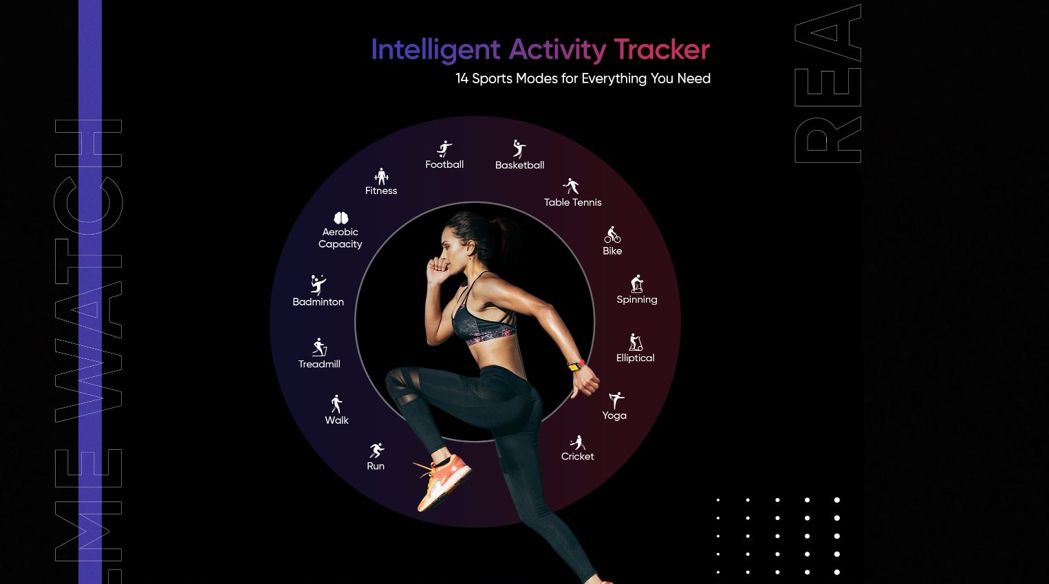 Beralih ke fitur, Realme Watch akan dilengkapi dengan berbagai macam fitur untuk melacak aktivitas olahraga seperti Basket, Tenis Meja, Bersepeda, Spinning, Elliptical, Yoga, Cricket, Lari, Berjalan, Treadmill, Badminton, Aerobic, Fitness, dan Sepak Bola.