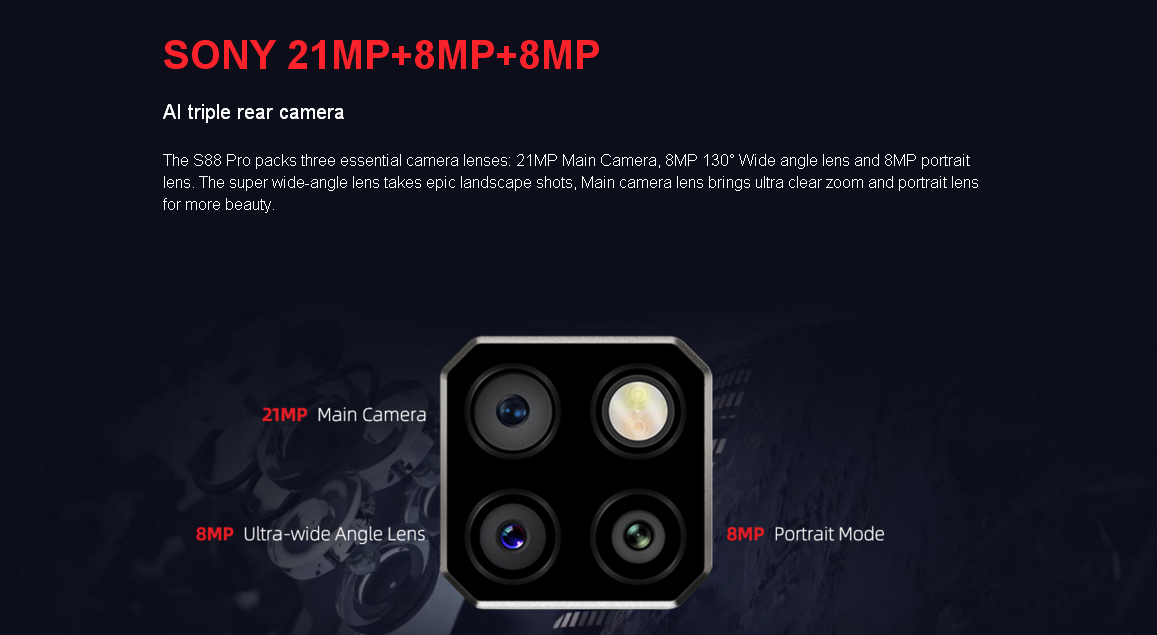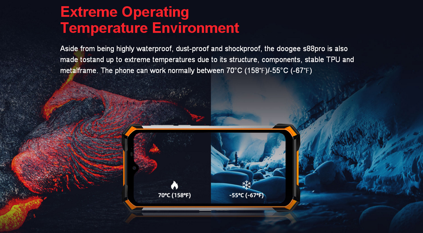 Tak cukup disitu saja, S88 Pro juga dapat bertahan di suhu ekstrim i.e -55°C dan 70°C.