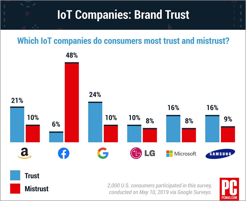 PC Mag baru-baru ini juga sudah membuat survei tentang tingkat kepercayaan orang-orang terhadap beberapa perusahaan IoT. PC Mag telah bertanya kepada 2.000 orang, dan berikut ini hasil yang mereka dapatkan dari survei tersebut.