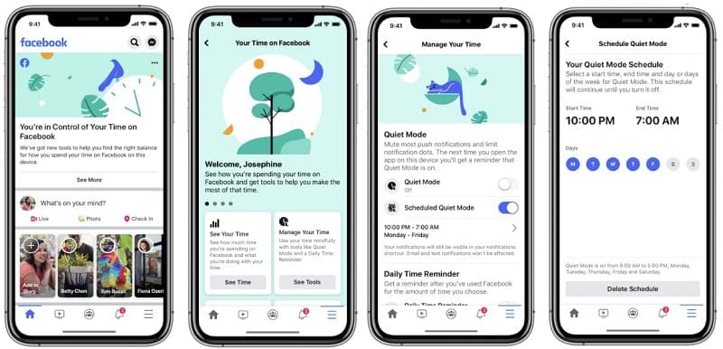 “Kami memiliki alat yang dapat membantu Anda menemukan keseimbangan yang tepat untuk bagaimana Anda menggunakan Facebook. Kami menambahkan mode diam, yang membisukan sebagian besar pemberitahuan, dan jika Anda mencoba membuka Facebook saat dalam mode diam, Anda akan diingatkan bahwa Anda menyisihkan waktu ini untuk membatasi waktu Anda di aplikasi.”