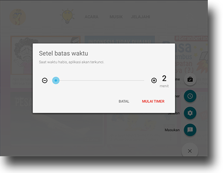 Ketika waktu habis, aplikasi akan terkunci dan yang bisa membukanya hanyalah orang tua saja.