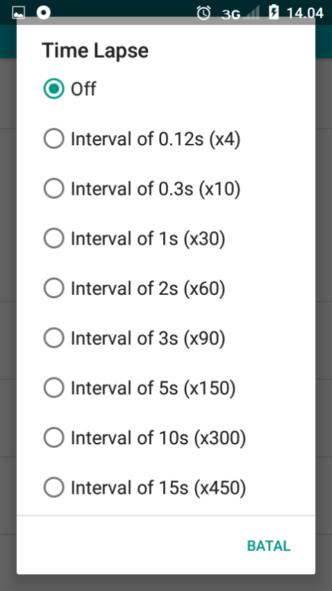 Masuk ke opsi time lapse nah nanti di situ akan di beri pilihan berapa waktu yang ingin kamu skip tiap frame nya.