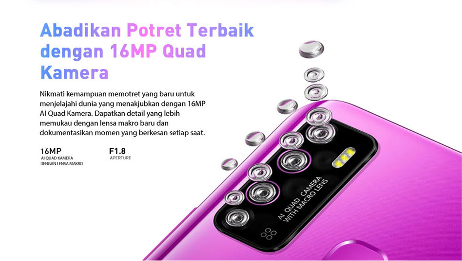 | Kamera | Kamera Depan: 8MP Kamera Belakang: 16MP 2MP 2MP Depth helper |