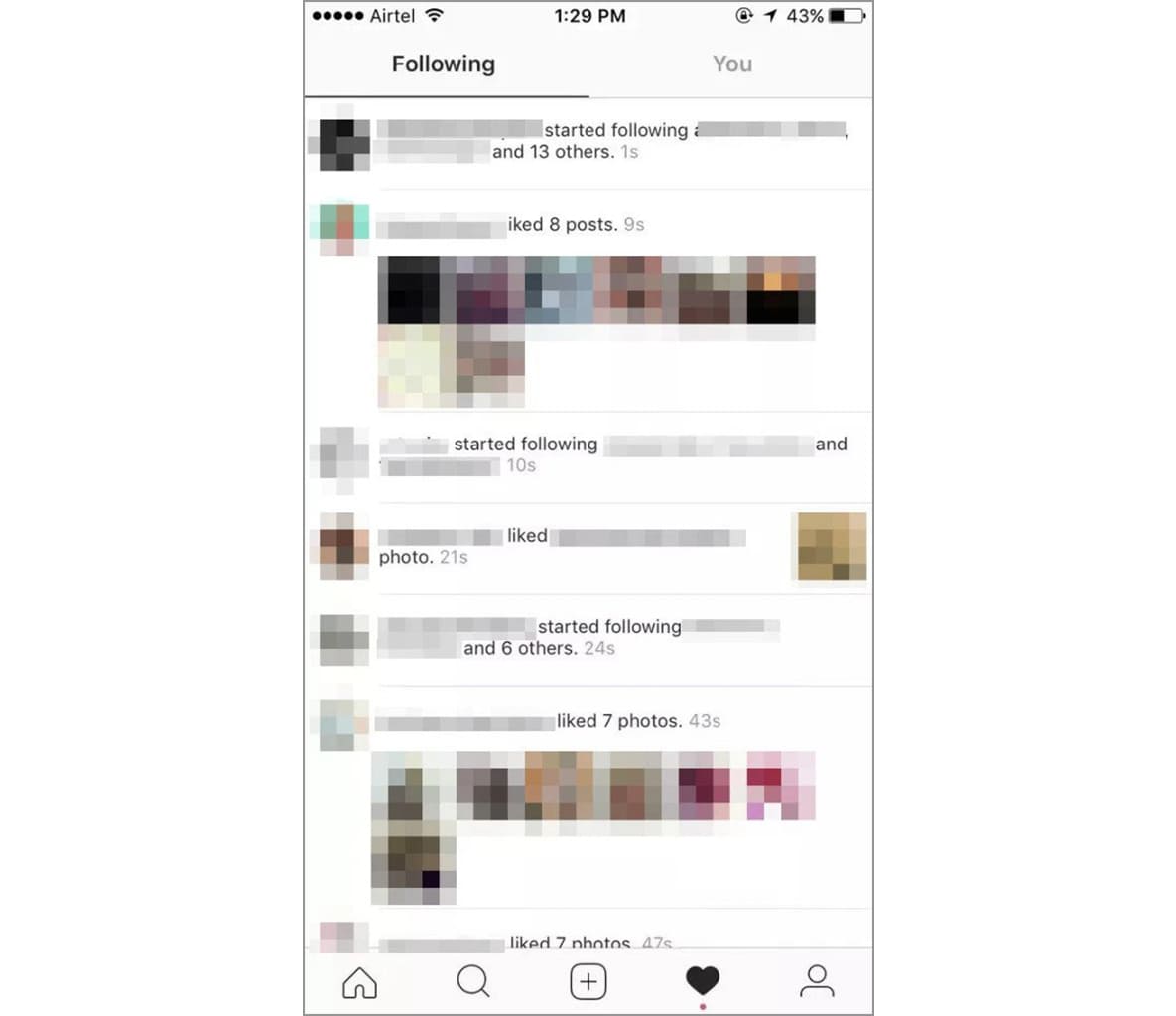 Kabar penghapusan following tab ini didapati dari The Sun. Menurut The Sun, hilangnya following tab ini sudah terjadi sejak Agustus 2019. Untuk beberapa pengguna yang terpengaruh penghapusan following tab, maka mereka hanya akan melihat notifikasi sendiri.