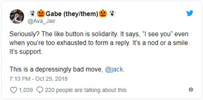 Selain alasan di atas, ternyata masih ada alasan lain di mana CEO mereka, Jack Dorsey bukanlah orang yang menyukai fitur like, sehingga dalam waktu dekat fitur tersebut akan segera dihilangkan di Twitter.