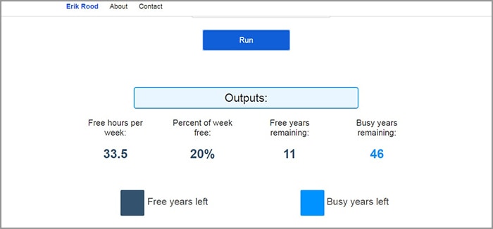 Free Time Calculator membantu menempatkan kepekaan perspektif pada hal-hal seperti, jam kerja, perjalanan, dan bagaimana faktor-faktor itu menumpuk dalam waktu yang lama dalam periode yang lama.