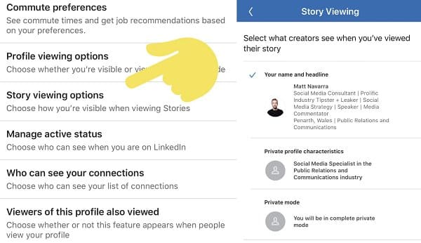 Masih ada detail lainnya, yaitu para pengguna dapat mengontrol informasi profil yang mereka tampilkan di daftar penampil Stories melalui pengaturan di akun mereka. Berikut ini adalah contoh pengaturan profil yang dimaksud.