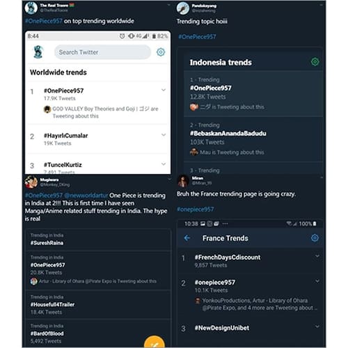 Adalah One Piece chapter ke-957 yang berhasil menduduki posisi puncak trending Twitter. Hal ini memang cukup mengejutkan, mengapa chapter ke-957 yang menjadi trending, dan bukan chapter sebelum-sebelumnya.