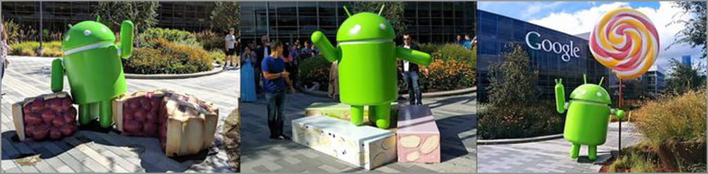 Ketika seri Android resmi diluncurkan, Google akan meletakkan maskotnya di halaman kantor. Maskot pun akan menarik perhatian banyak orang karena selalu berdiri dengan makanan manis yang dijadikan nama OS Android, seperti Pie, Nougat, dan Lollipop.