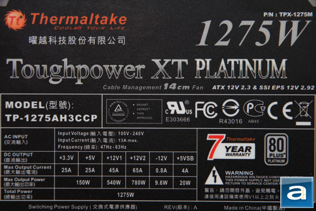 Total power (watt) PSU tersebut adalah 1275 Watt.