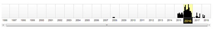 Bundaran-bundaran berwarna yang terdapat di dalam deretan tanggal dan bulan, menunjukkan berapa kali Wayback Machine merayapi Klik Mania.