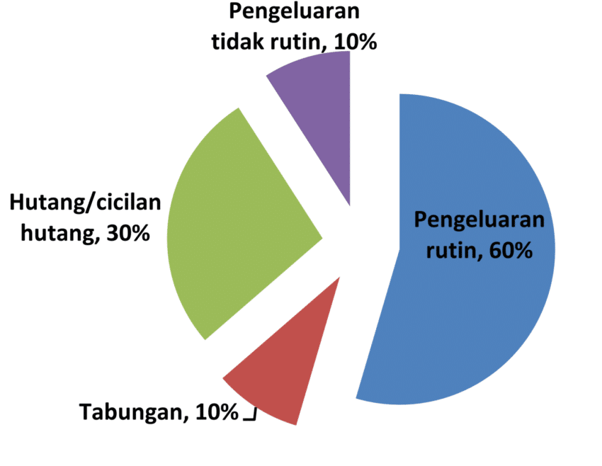 Idealnya, pengeluaran rutin rumah tangga tidak melebihi dari 60% pendapatan. Pengeluaran ini biasanya meliputi biaya makan, rumah,biaya transportasi, biaya anak, biaya dokter, zakat, dan lain-lain.