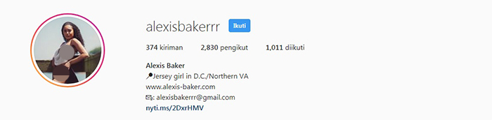 Alexis Baker adalah salah satu nano influencers yang ada di Amerika Serikat. Bisa Anda lihat sendiri, jumlah followers-nya masih sangat sedikit, yaitu sekitar 2 ribuan lebih.