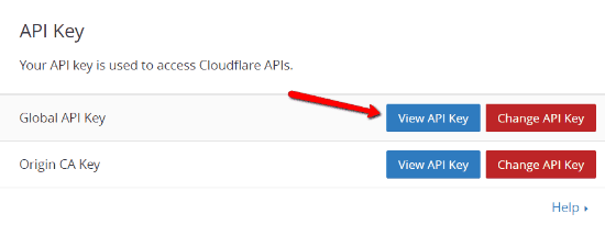 Anda dapat menemukan API key ColudFlare pada menu My Account dan pilih bagian API Key: