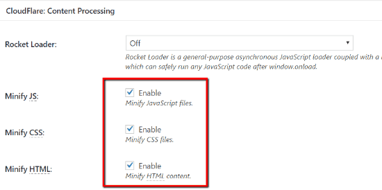 Langkah 6: Mengaktifkan Minify CloudFlare