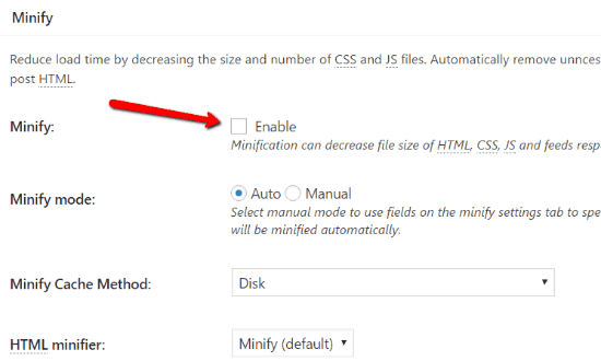 3. Minify – Disable