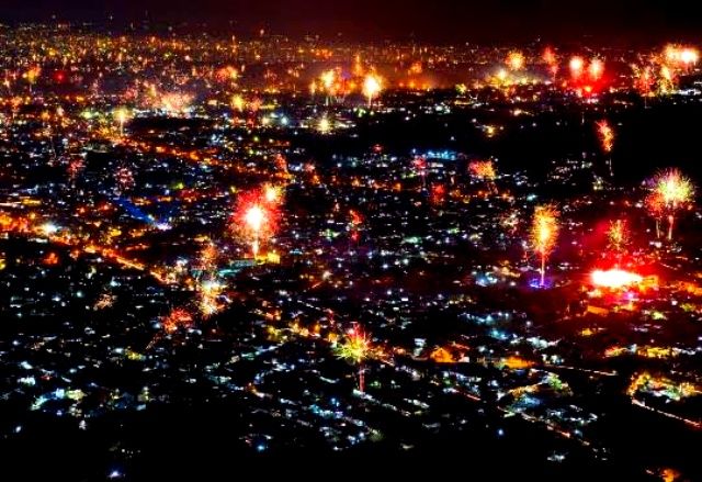 Pada malam pergantian tahun, kamu cukup duduk manis dan memandang ke langit untuk menyaksikan indahnya langit malam karena sentuhan kembang api.