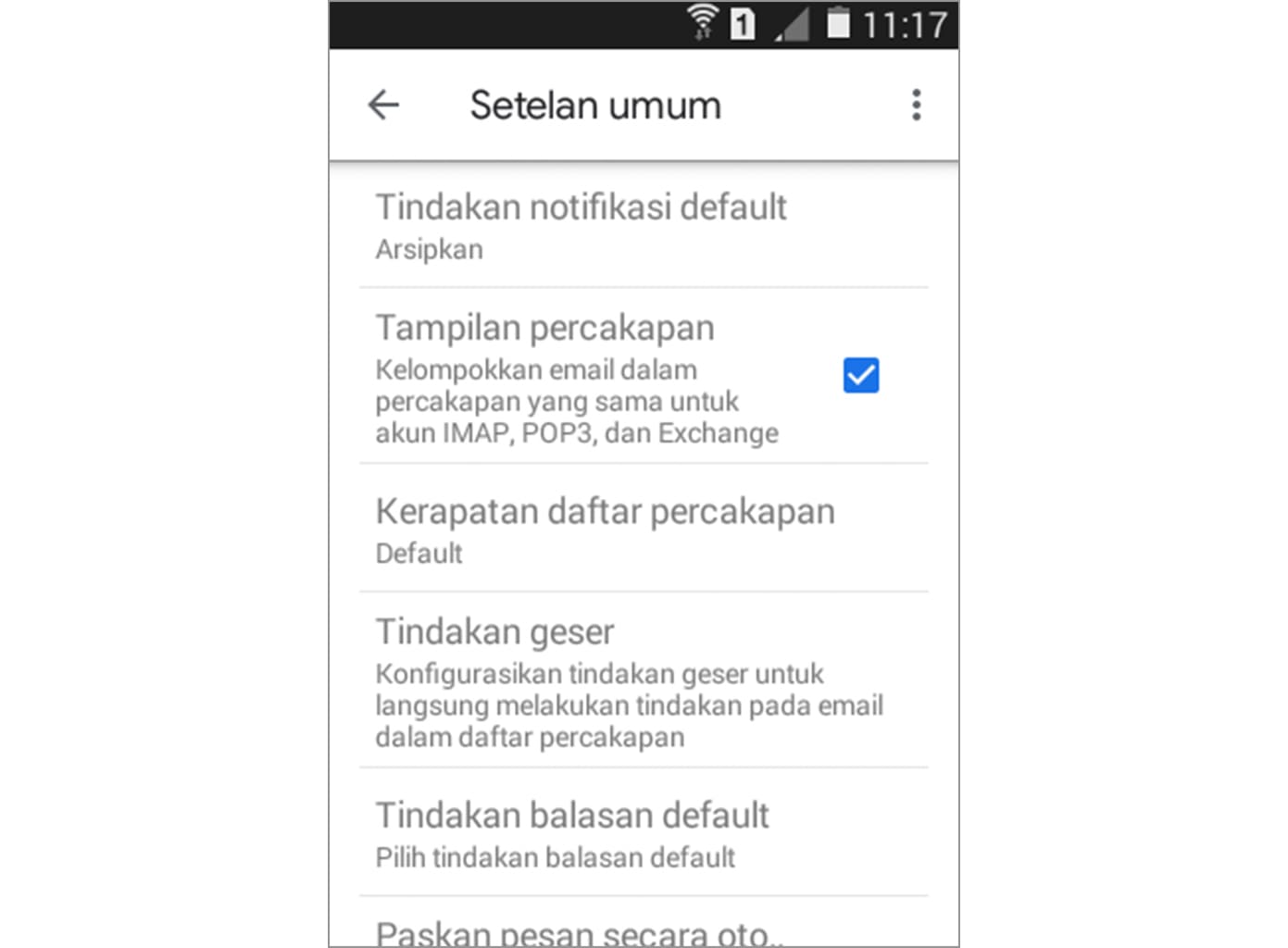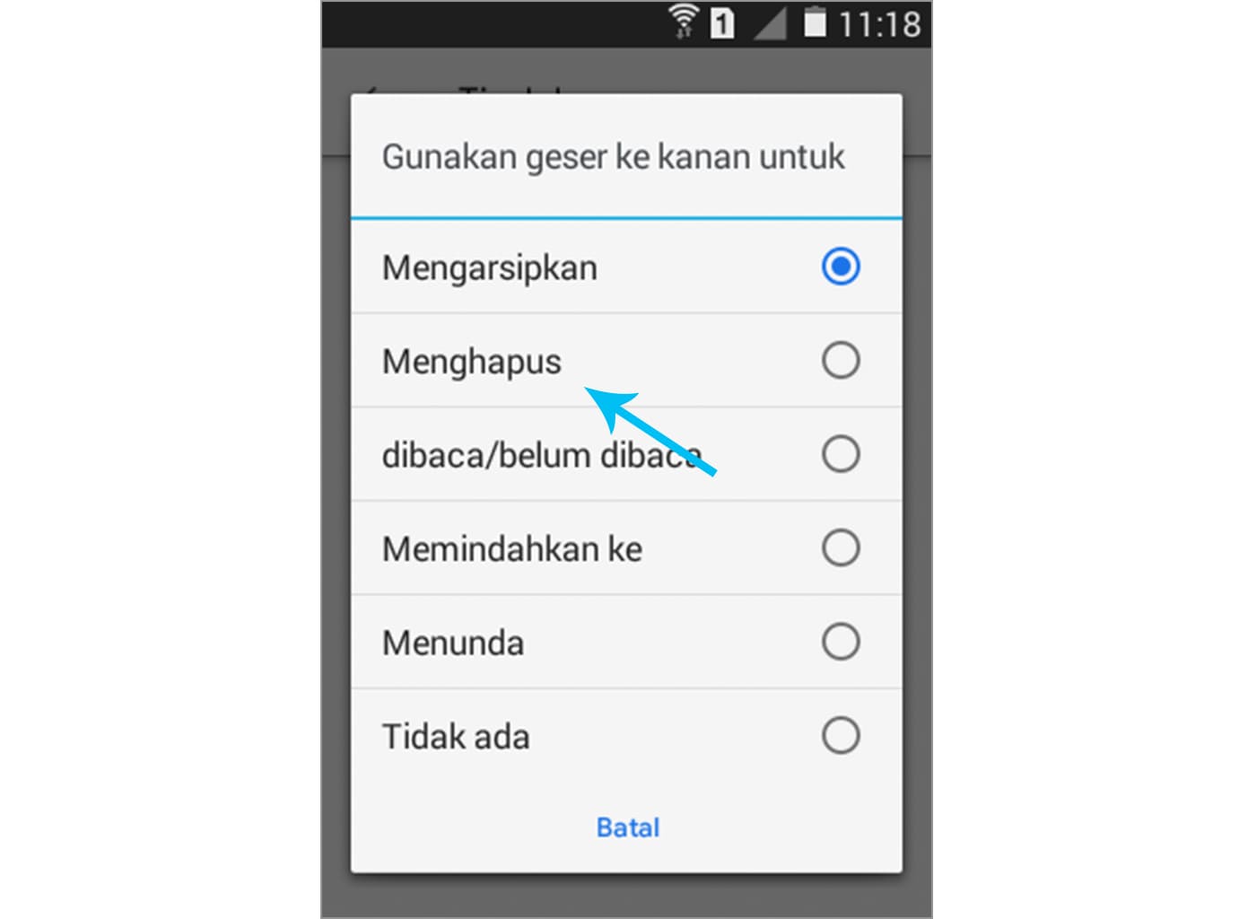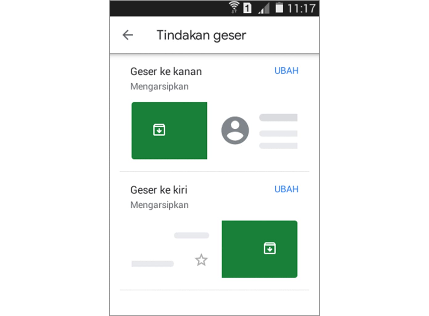 2. Berikut ini adalah tampilan default dari tindakan geser yang berupa mengarsipkan.