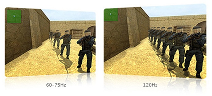 Monitor yang mempunyai Refresh rate tinggi maka pergerakan gambar yang dihasilkan akan terlihat lebih mulus karena gambar yang ditampilkan lebih banyak.