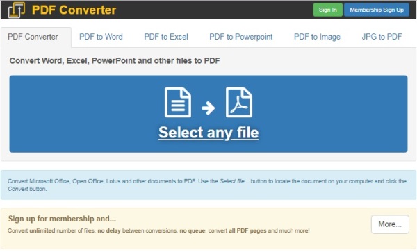 FreePDFConvert.com juga berfungsi sebaliknya. Di mana anda bisa menggunakan FreePDFConvert.com untuk mengubah file PDF menjadi dokumen MS Word, Excel, PowertPoint, atau bahkan menjadi gambar dengan format file JPG/PNG/TIFF.