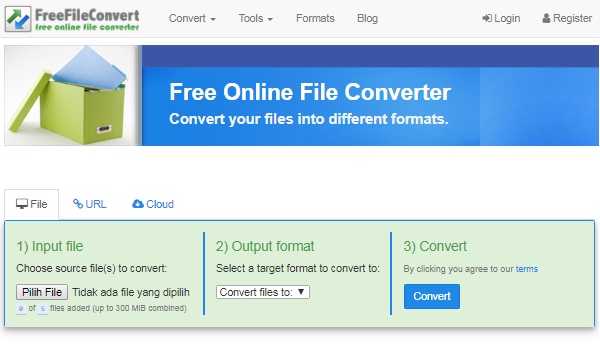 Free File Convert merupakan pengubah file, untuk mengubah berbagai jenis file menjadi PDF atau sebaliknya. Misal mengubah file MS Word menjadi file PDF, juga sebaliknya, mengubah file PDF menjadi HTML, DOC, atau MOBI.
