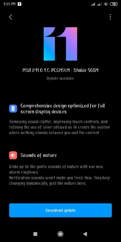 Dengan security patch 2019, MIUI 11 Update tersebut masih berbasis Android 9 Pie dan bukan Android 10.