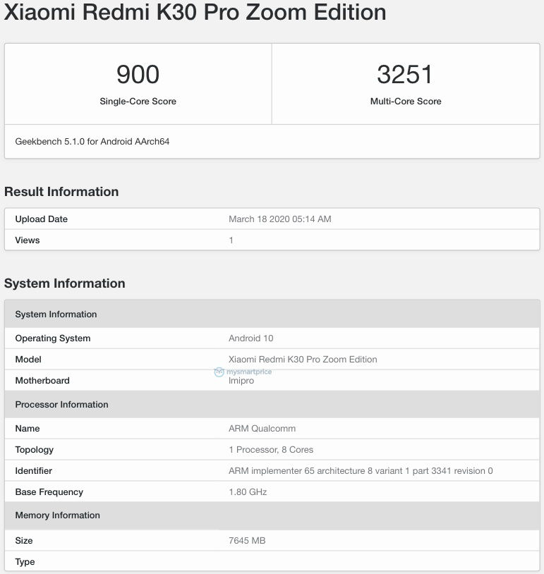 K30 Pro Zoom Edition juga baru-baru ini telah muncul di Geekbench dan memperoleh skor 900 dan 3,251 poin.