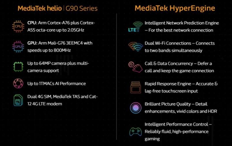 Berdasarkan informasi resmi dari Mediatek, Helio G90 series dibuat dengan teknologi TSMC’s 12nm FinFET process yang juga digunakan oleh Helio P90 sebelumnya.