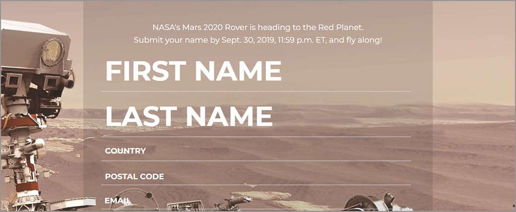 1. Silakan buka tautan send your name to Mars.