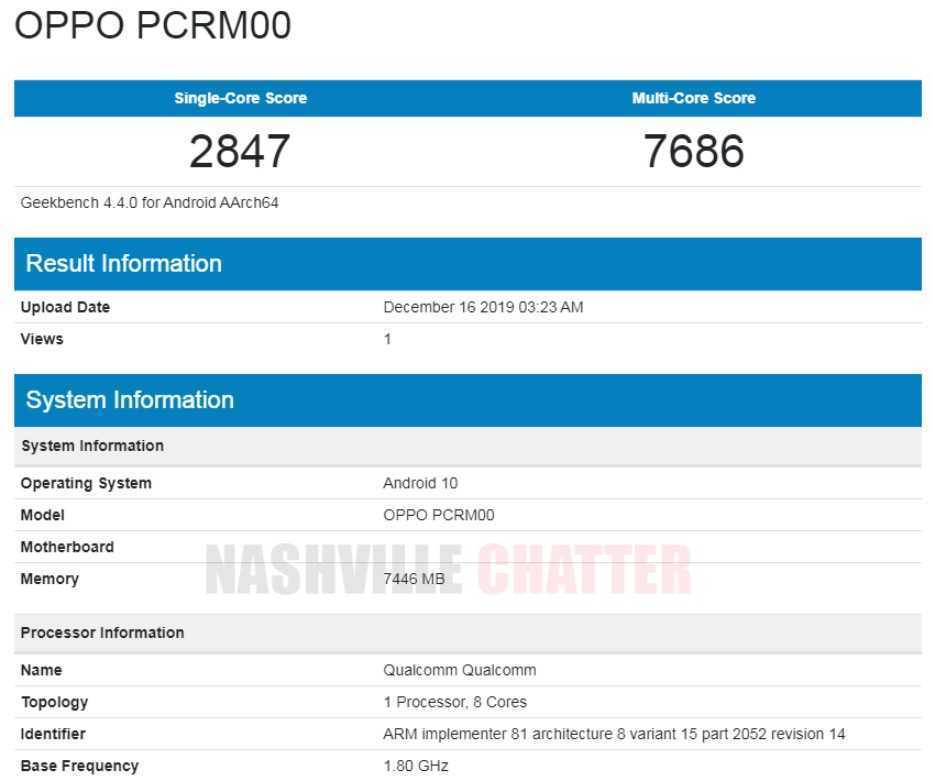 Menurut laporan terbaru minggu ini, Smartphone milik Oppo telah muncul di situs Geekbench dengan model number PCRM00.