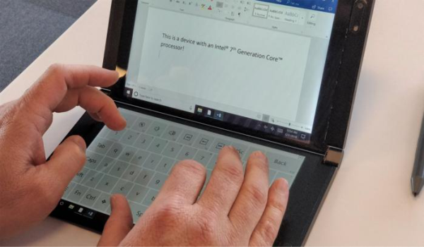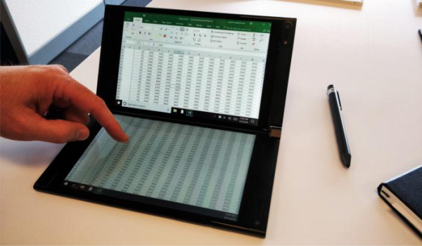 Jadi fungsi antara layar primer dengan sekunder akan berbeda nantinya, kedua layar ini akan bisa dilipat seperti halnya laptop biasa. Hal yang membedakannya dengan laptop biasa adalah layar dan keyboardnya.