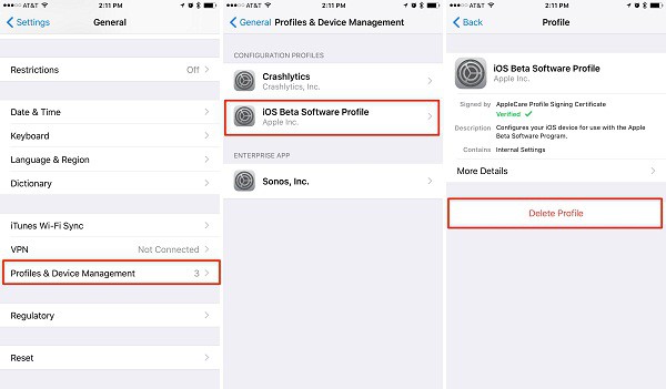 - Pilih iOS Beta Software Profile, lalu tap Delete Profile.